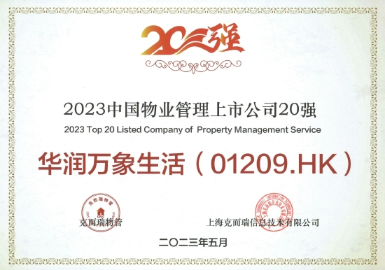 喜报 | 华润万象生活荣获“2023中国物业管理上市公司20强”等多项殊荣