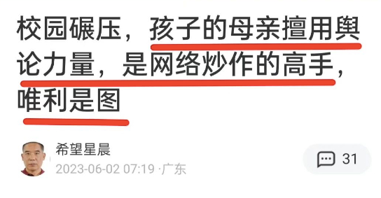 甚至在孩子母亲自杀后,还有人想把责任推给有关部门,认为并不一定是网暴的错,是有关部门没有处理好。但这起事件中,明明确确就是网暴在杀人!