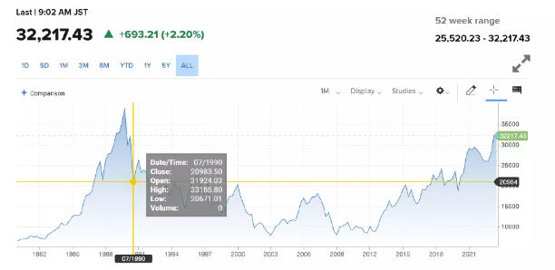 2023年6月5日,日经指数创下1990年7月以来新高,首次超过32000点。