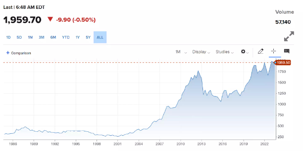 稍大的2%配置在过去一年中表现稍差(下降约9%),但在10年期间每年增长近18%。