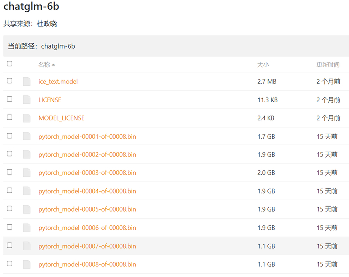 代码在执行时默认自动下载模型。如果没有使用魔法,你需要手动下载模型。在 清华大学云盘 下载模型,假设下载到 D:\chatglm-6b-models