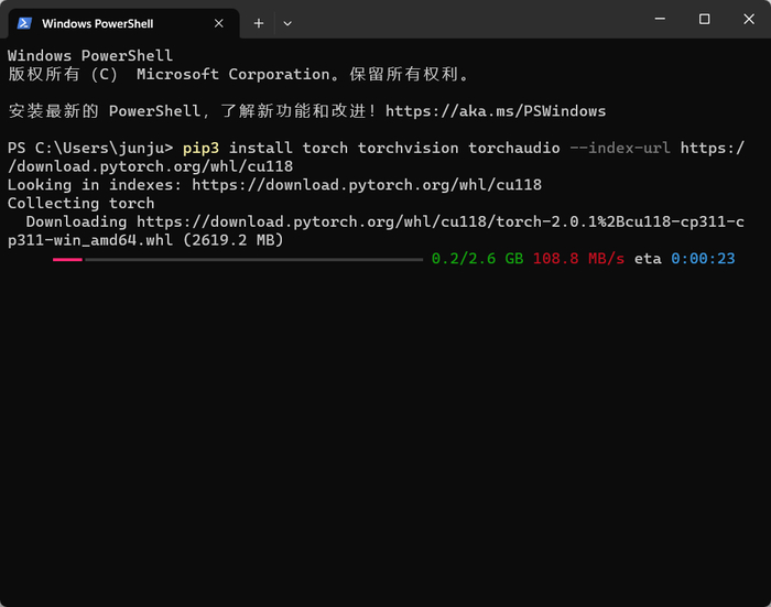 pip3 install torch torchvision torchaudio --index-url https:/ /download.pytorch.org/whl/cu118