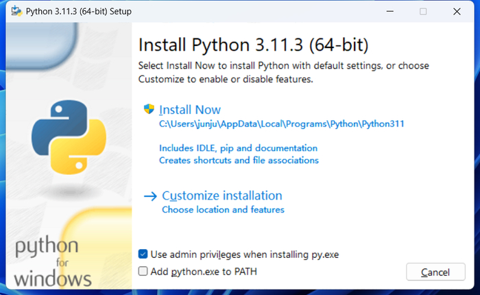 Python 官网下载并安装 Python,记得选上“Add python.exe to PATH”。