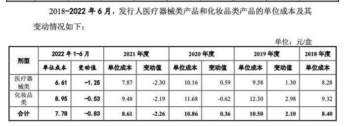 根据2022年9月22日的一份深交所问询函回复公告显示,“械字号”的敷料成本,一盒仅6.61元。“妆字号”的面膜成本,一盒仅8.95元。