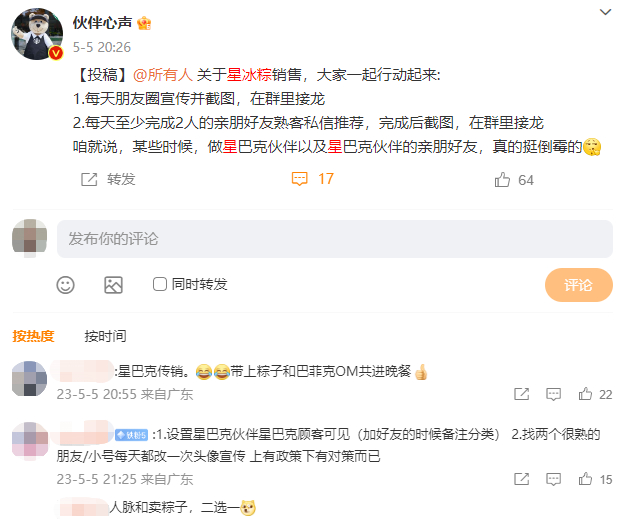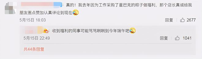 这样的奇闻轶事不算罕见,微博上也有网友表示,自己在一家门店采购星冰粽作为公司礼盒后,店长从此以后给她的每一条朋友圈点赞并走心评论。