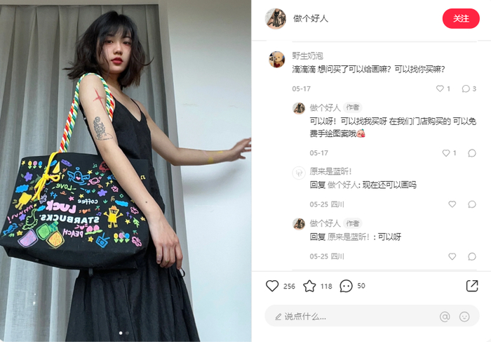 今年的托特包,除了撞色编织的提手外,包身是黑白纯色,看似平平无奇,却因为可以手绘DIY,提供了更大的商机。急于卖粽子的员工各显神通,纷纷充当起了义务画师。只要买粽子,想要啥图案您只管张口。