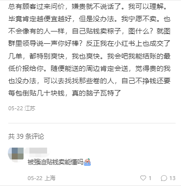 这些努力有时候是可量化的,因为有员工在自掏腰包贴补顾客,只求顾客能拿走一盒粽子。“倒贴”的形式包括但不限于送饮品、送周边、送券,以及包邮。