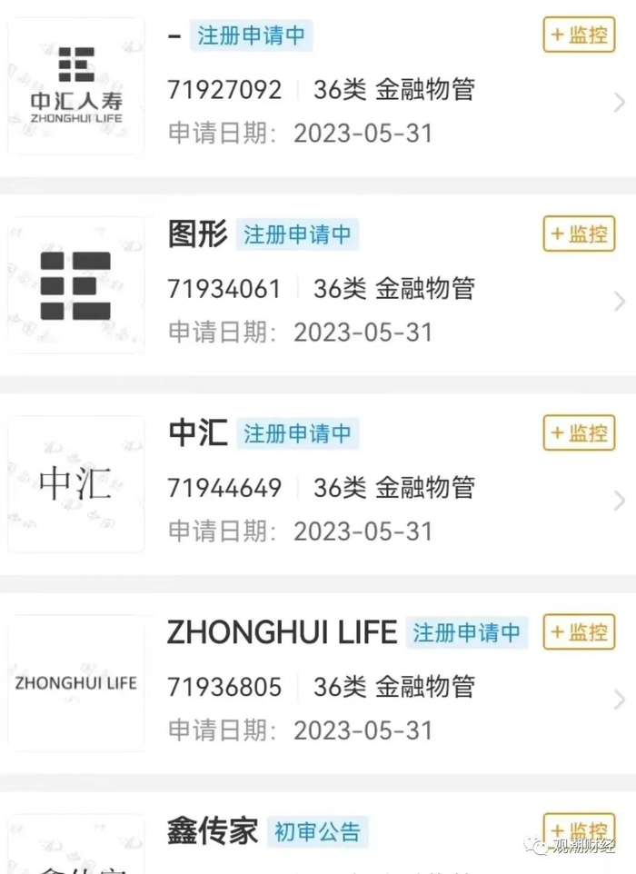 5月31日,中汇人寿的标志首次出现在工商登记页面,最近两年关于天安人寿更名的信息甚嚣尘上,近日据可靠消息称,天安人寿将更名中汇人寿,品牌商标在圈内流传。