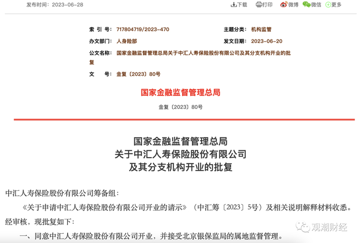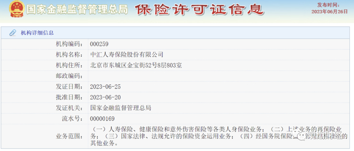 就在刚刚过去的6月25日,国家金融监督管理总局发布行政许可信息,中汇人寿首次公开出现。