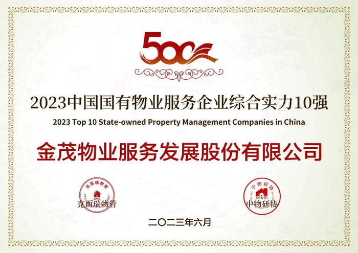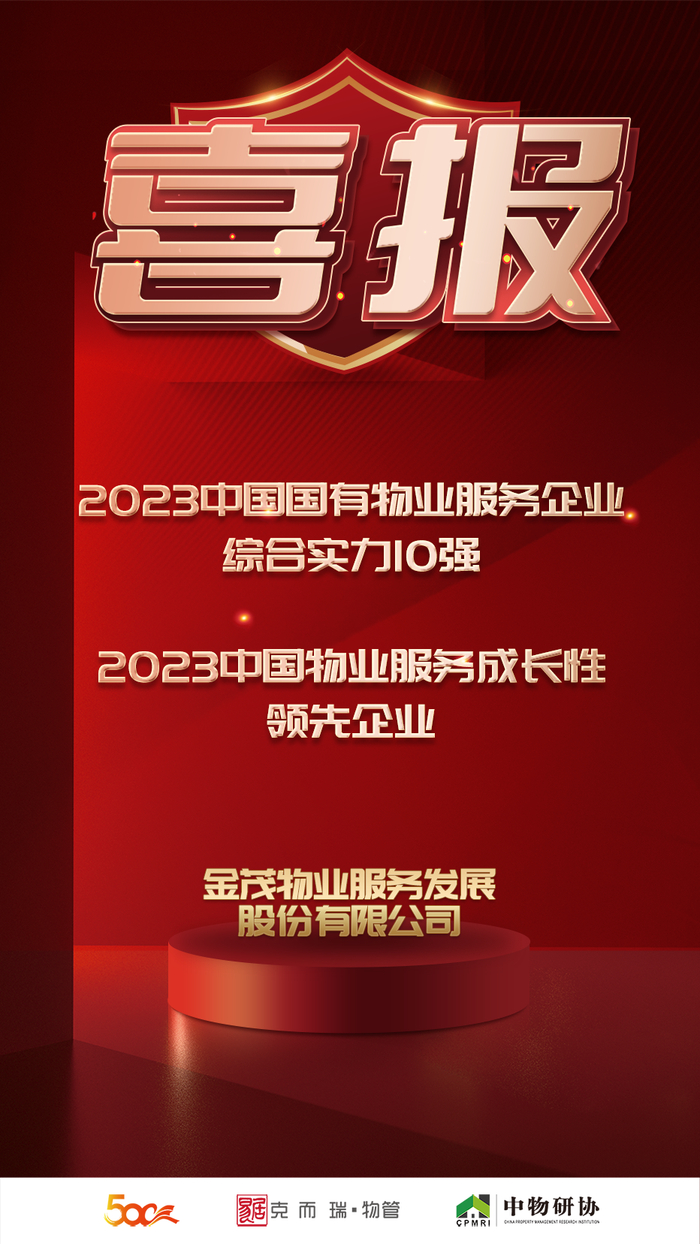 喜报 | 金茂服务荣获“2023中国国有物业服务企业综合实力10强”以及“2023中国物业服务成长性领先企业”奖项