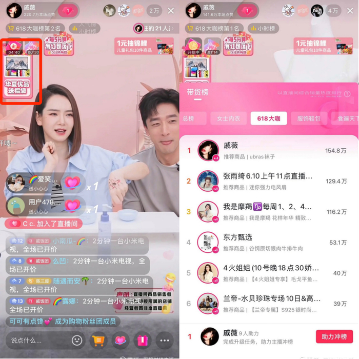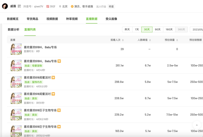 如今,同样在美妆垂类属于头部主播的“东方甄选美丽生活”,整个抖音618销售额高达2.5亿-5亿元,戚薇2800万元的GMV量级远远比不上。不少行业人士的体感,“戚薇现在的带货能力确实没有以前强了”。换句话说,华夏视听选择戚薇的时机不对,现在并不是她直播变现能力最强和最为高光的时刻。