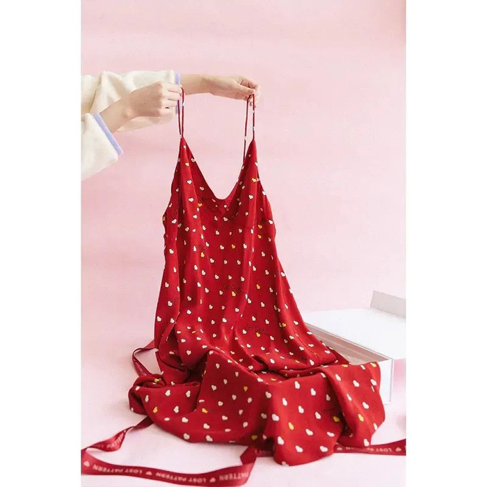 夏天穿搭,怎么能少得了吊带裙~双成记最近推出了一款限定版桃心小红裙礼盒,包含的这条小红裙很戳范主的心,优雅明媚的红色点缀着可爱的桃心,颜值超级高~