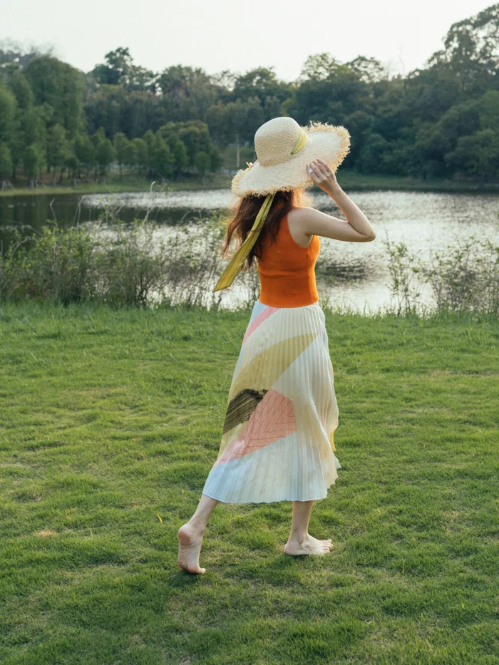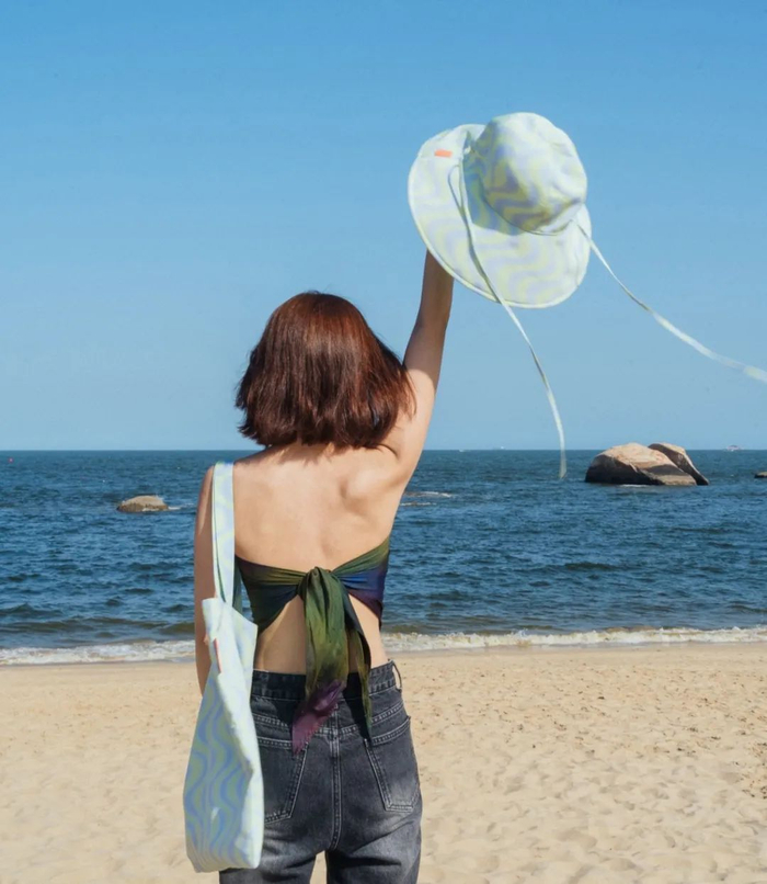 帽檐很宽,能很好地遮挡阳光,戴在头上安全感足足的,手感也很顺滑。再配上漂亮的印花,感觉像把夏日穿在了身上~