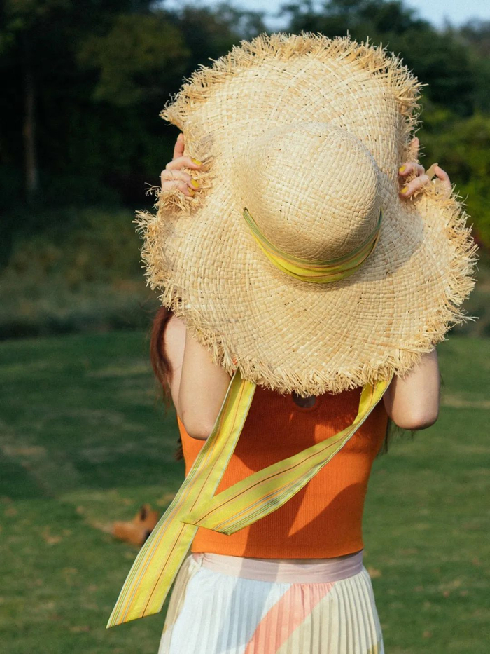 帽体由天然拉菲草棉制,带有淡淡的清香,柔软又轻盈。