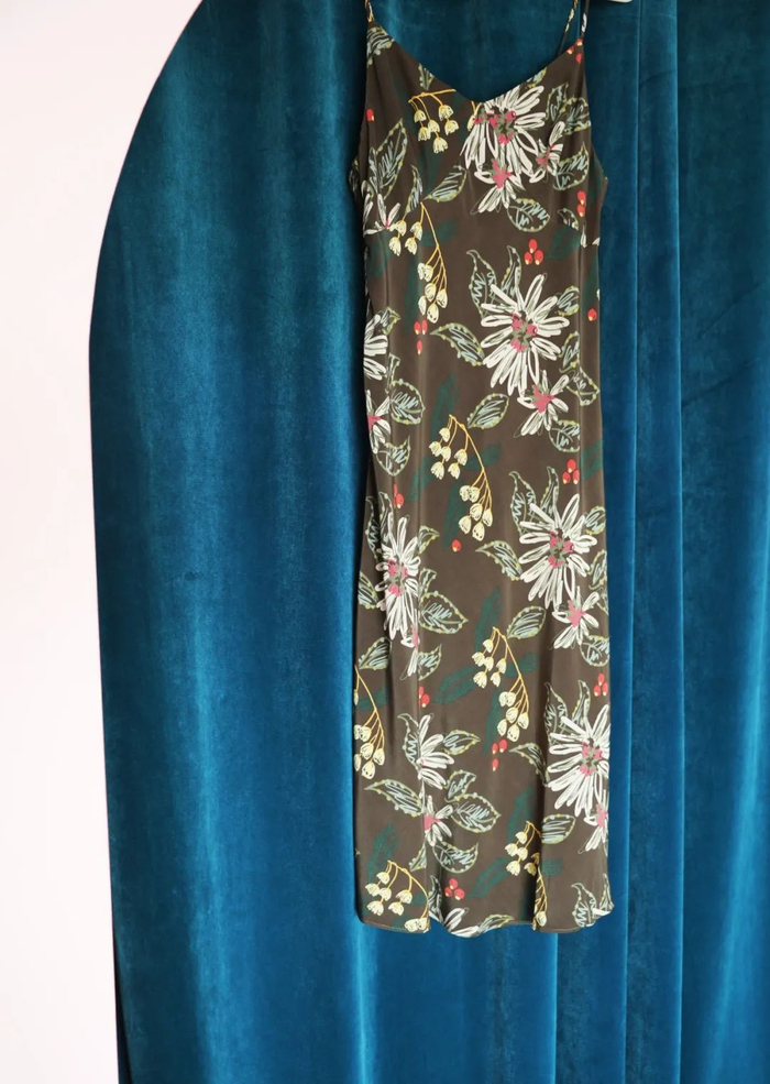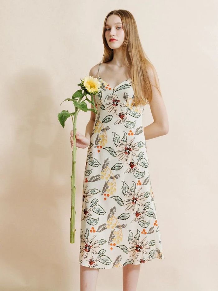 如果你想找一款风格独特又很日常的连衣裙,这款森林吊带连衣裙也很不错,上面的原创手绘森林印花图案,灵感来自新西兰岛特有的野生花卉,风格富有大自然的艺术气息。
