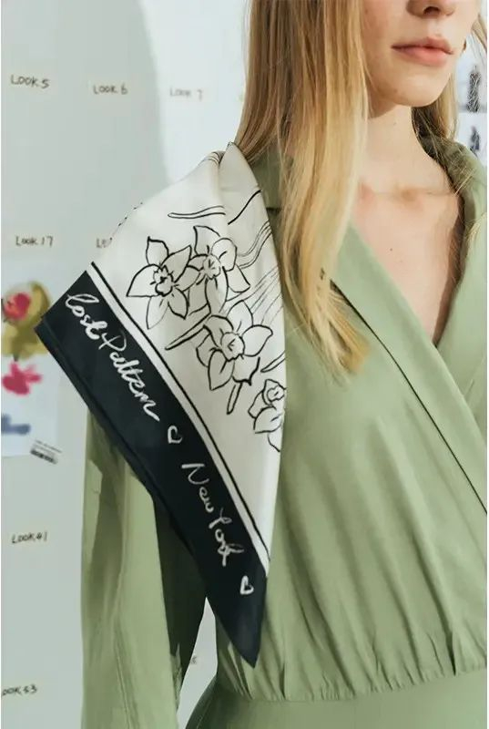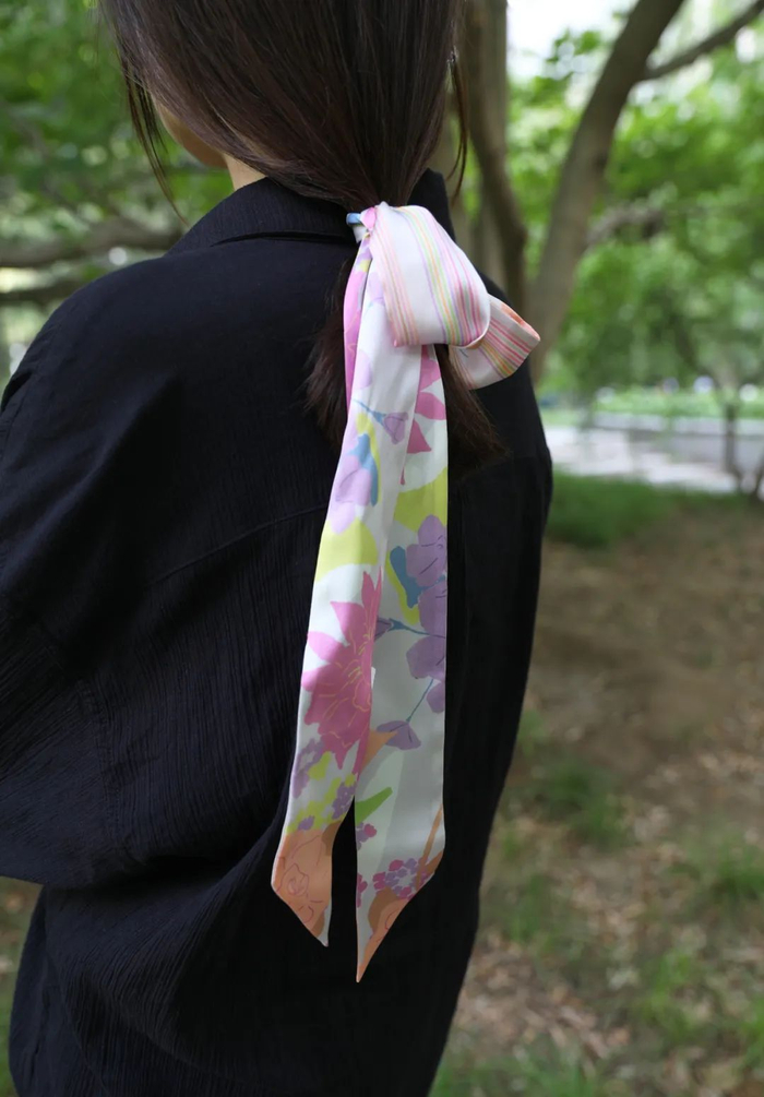 双成记的窄丝巾也很受欢迎,这款同样来自弗里达系列,风格清新温柔,一年四季佩戴都很适合~