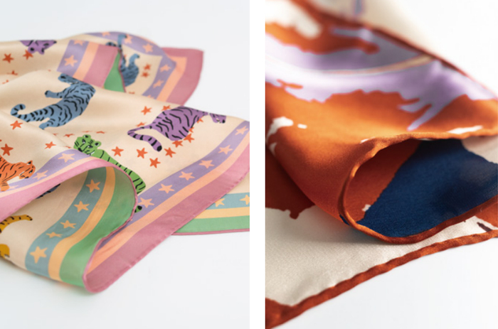 清晰的印花,也离不开精湛的技术。双成记使用的全新工艺“双面异色数码印花”,让每一个色彩和图案都得以完美呈现,丝巾无论正反都能拥有饱满立体的印花~真丝丝巾边缘还保留了手工卷边这一古老的丝绸制作传统,凸显质感与品位。