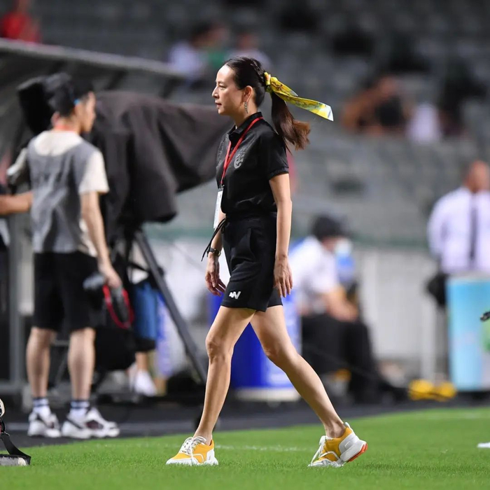 丝巾作为一种可发挥性极强的单品,搭配方式非常多种多样,范主给大家扒过的泰国女企业家伍伦盼,最近亮相就用一条明黄色丝巾当成发带来搭配,还呼应了鞋子的穿搭,十分抓人眼球。