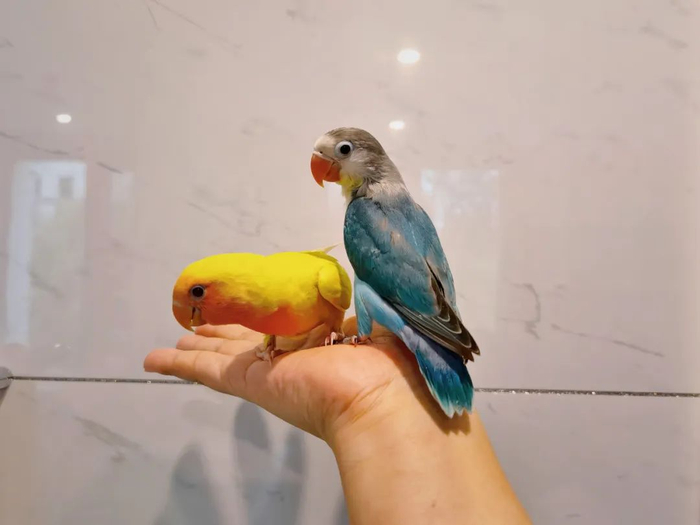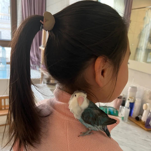 这只鹦鹉叫「蓝莓」,当时一起来的另一只鹦鹉叫「黄桃」,名字都是我闺女起的。起名根据主要是羽毛颜色。