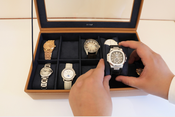 我和Boy A各种尺寸的腕表放进去都很合适,10格的容量超级实用。