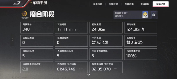 从外观的颜色搭配、造型设计,到内部的装饰,诸如皮革座椅的质感、中控台按钮等等,游戏几乎1:1还原真实车辆,再搭配上车辆数据、车辆故事等内容,在增强真实感的同时起到了一定的科普作用。此外,游戏还设置了玩家车辆使用的记录,其中包括驾驶时间、行驶里程、平均车速等,极大满足赛车狂热爱好者的代入感。