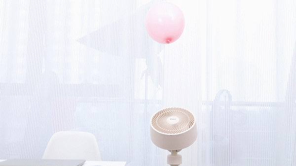 侧面也能轻轻松松感受到风,而且整个过程十分轻柔,柔得连气球都一直追着风跑,吹起来很有春风拂面的透爽感。