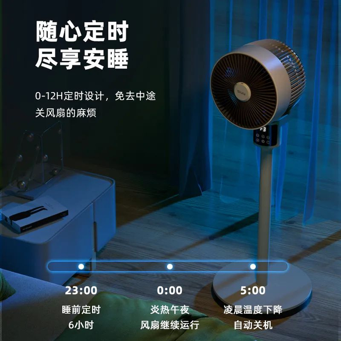 西佑新款循环扇支持1H-2H-4H-8H-12H定时,这比市面上很多产品选择要更广!(市面更多是4/8h)