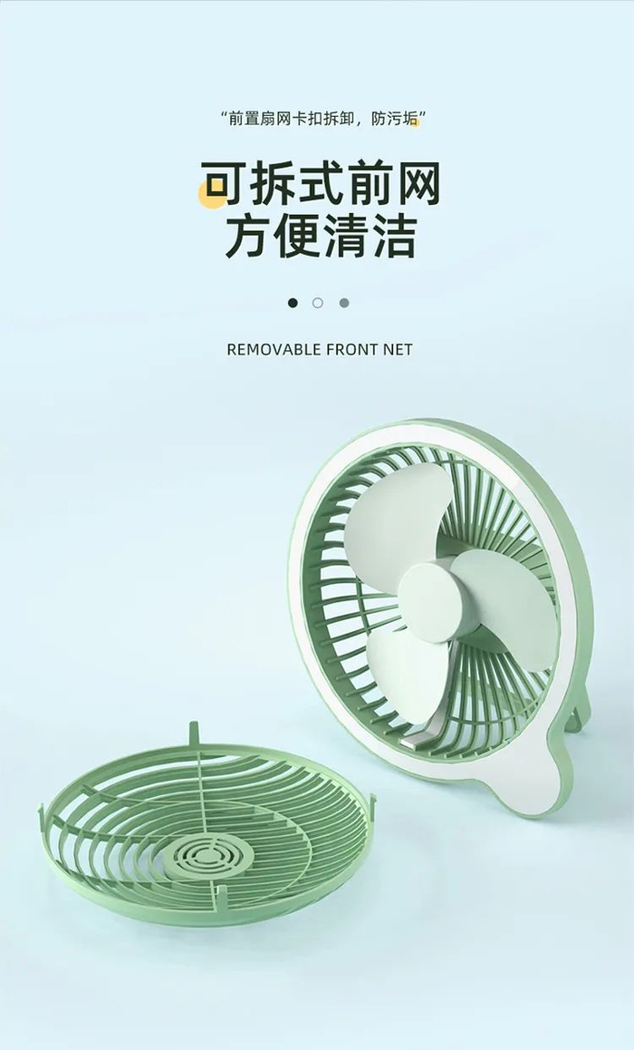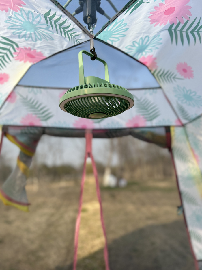 这种模式很适合露营使用,很多帐篷顶部都会带有挂钩支架的,秒变小吊扇~
