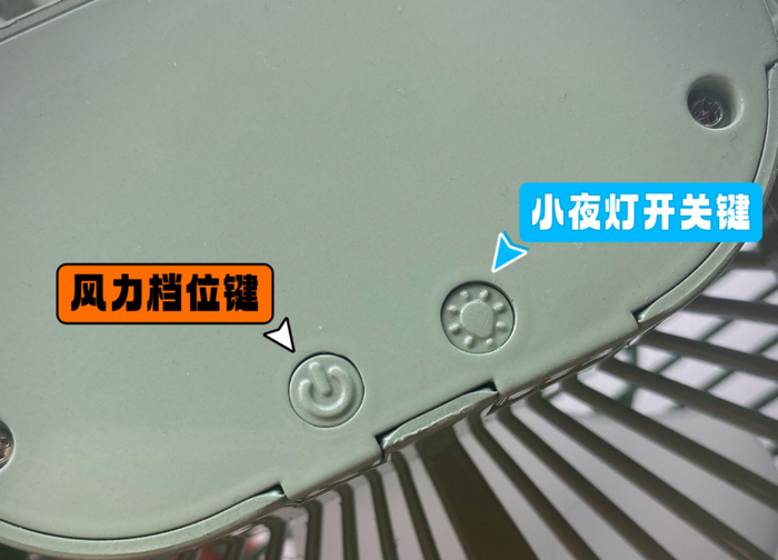 背部有2个按键,分别是风力档位键和小夜灯开关键