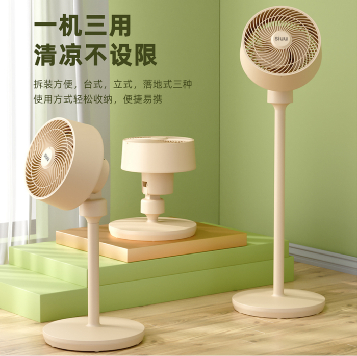 西佑循环扇可以一体三用——支撑杆有两截,能按需装成台式、立式和落地式。