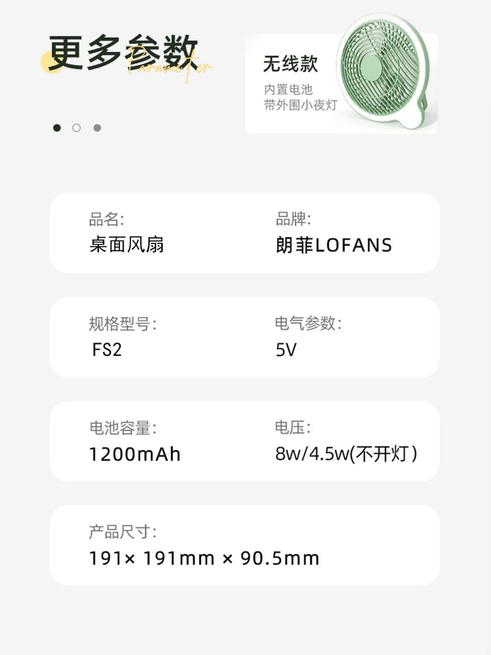 很多风扇一开机,就是特别大的嗡嗡声,但这款小Q经过测试,噪音≤50DB,一点不会觉得吵。
