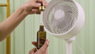除此之外,西佑这款风扇,网罩中心位置还加入了一个香薰盒,可以滴进去一些香薰精油或驱蚊液,让整个居家环境更怡然舒适。