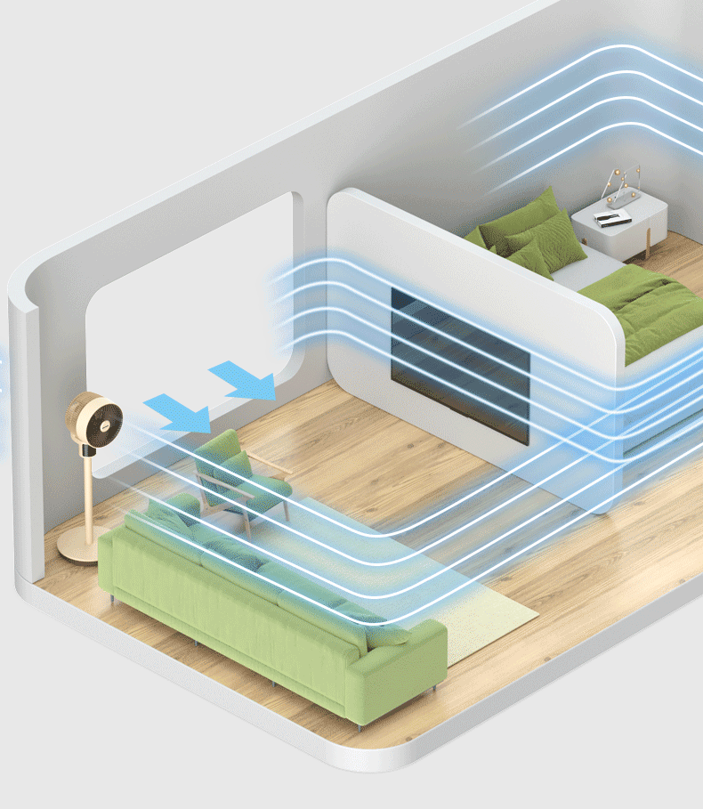 对比传统落地扇更能实现远距离送风,轻轻松松把循环风输送到房间各个方位。空气流通起来了,闷热局促的感觉就会改善许多。