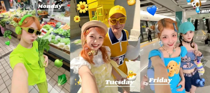 实际上“多巴胺穿搭”的流行已经完全超越了性别、年龄和职业的界限,成为一场全民参与的流行狂欢。在社交媒体上,自称“多巴胺男孩”和“多巴胺甜妹”的穿搭博主们,极力展现着青春的气息;过去短视频平台上,穿搭风格多变的“爷爷辈博主”也亲自下场赶上新一轮流行;此外,白领、医生、空姐等带有职业标签的博主也以各自的方式加入追逐“多巴胺”热点的队列中。