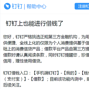 虽然用户可在钉钉上借款还款,但钉钉客服也表示,钉钉自身没有贷款业务,此服务由第三方贷款平台提供,钉钉只负责对接第三方,不参与资格审查、额度审批、放款及贷后服务等过程。