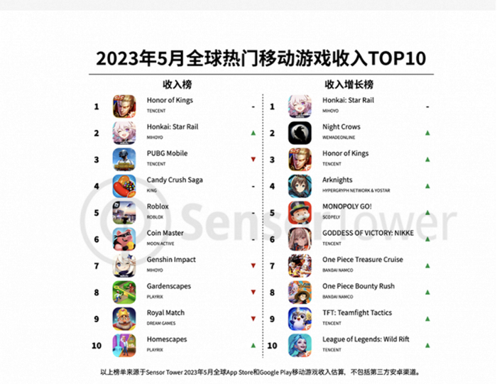 虽然在米哈游渠道火力全开的加持下,《星铁》的成绩称得上惊艳:根据Sensor Tower报告,《星铁》上市后10天内,其全球总营收已超过1亿美元,超过《原神》同期近20%;5月《星铁》全球收入仅次于腾讯的《王者荣耀》。