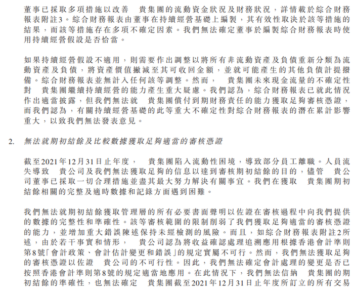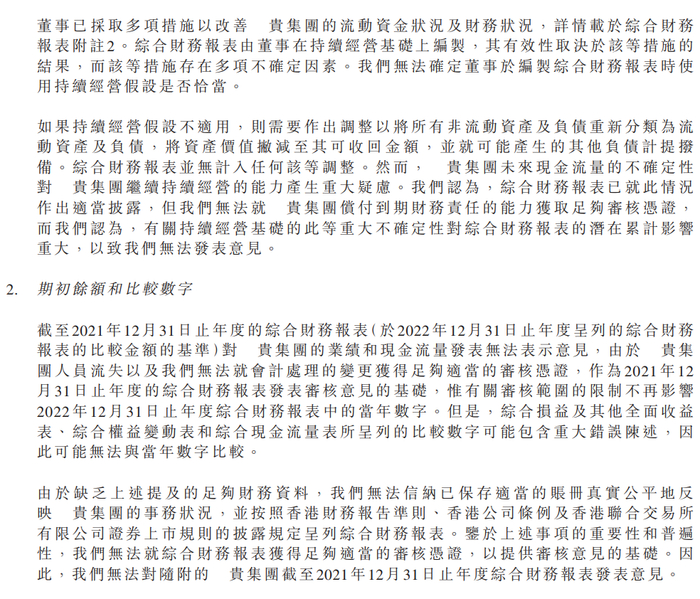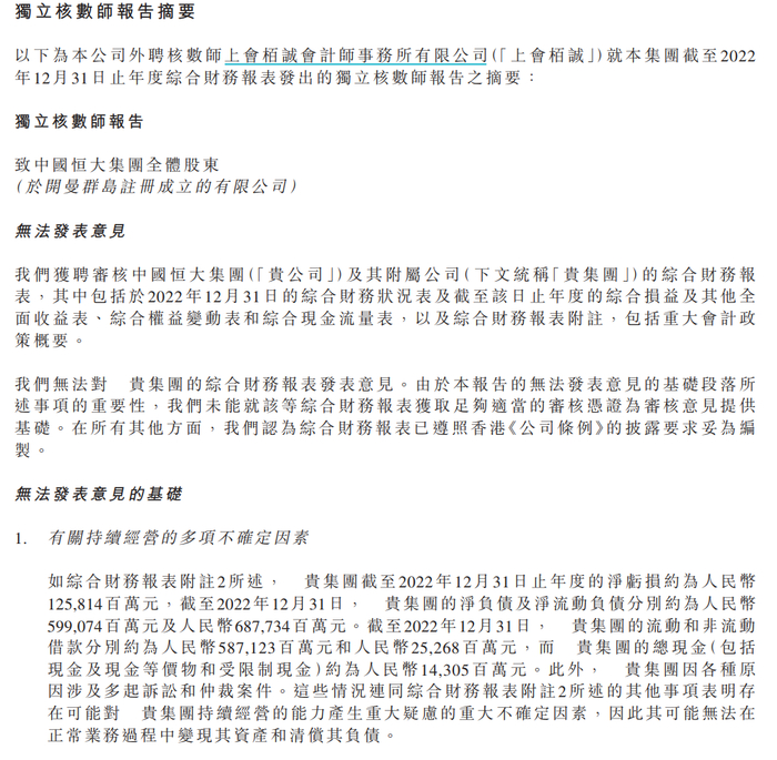 香港上会柏诚会计所出具的中国恒大(3333.HK)2022年报审计报告,无法表示意见。