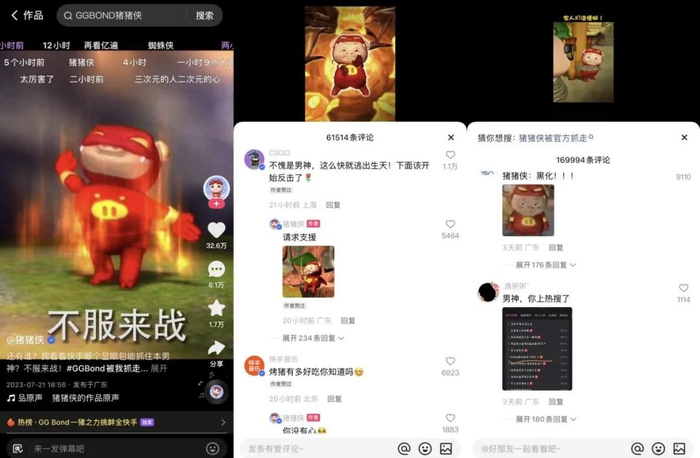 尤其是猪猪侠在快手账号的两次独家回应,“反正我是赢定的!”“不服来战!”,以及去到各大官号视频下独家互动,在保留IP原有属性的同时,结合此次“绑架”事件,呈现出更丰富立体的角色形象,赢得粉丝广泛的喜爱,突显出强大的IP生命力。