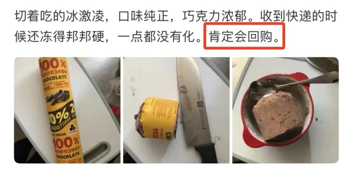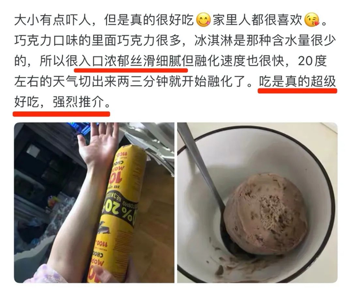 豆瓣小组里,也有网友分享了她的真实购买经验,而且是试吃观察了一个多月后,一定要安利的就是如迪冰激淋!