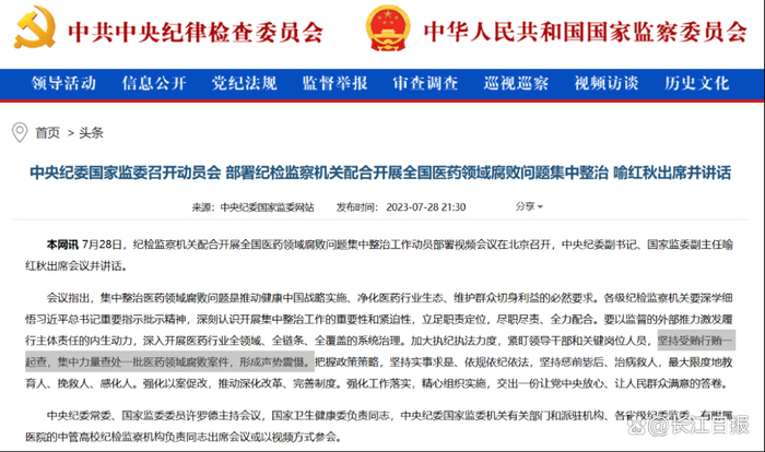 就在上周五,中纪委就将要开展的全国医药领域腐败问题集中整治进行动员部署。