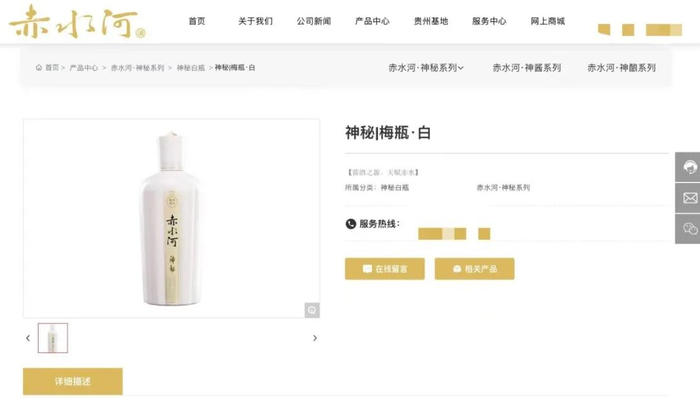 中赤酒业官网显示,“赤水河”是中国早期注册的白酒品牌之一,与茅台、习酒同属于“赤水河谷”酱酒核心产区,目前有神秘系列、神酱系列、神酿系列三个产品种类。据赤水河酒微信公众号发布的信息,赤水河酒神秘系列白瓶售价为1299元,其他产品售价信息尚未透露。