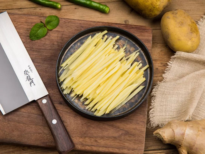 中国人做菜爱用方刀,好拿好用劲;无论切片、切丝,刀都“不飘不歪”;切好的菜,顺手一抄,就运送到锅里了,超方便。