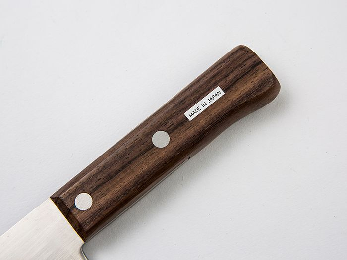 藤次郎这把刀,选用日本420不锈钢为材料。钢材的含碳量在1%左右,是普通厨刀的一倍以上,硬度高(硬度为58),耐用度好。