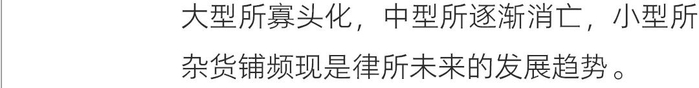 但中型所最尴尬,要么被大所分化,成为某家大卖场的分店,要么规模扩大以后,内部矛盾激化,合伙人和律师们四分五裂,重新回到小所阵营。