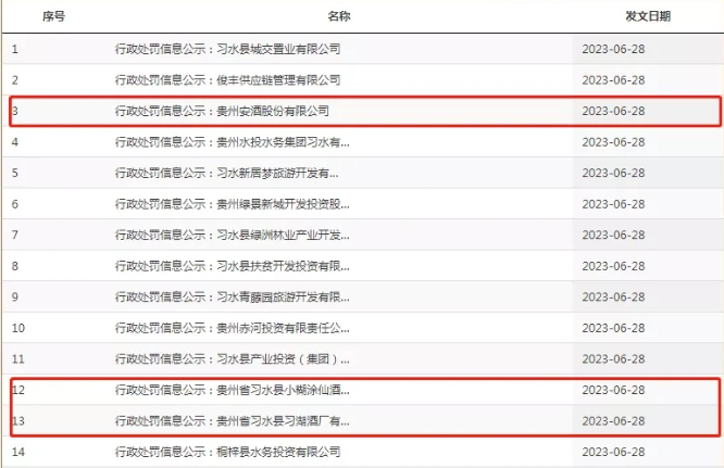 无独有偶,似乎是为了印证金叫唤上面文章的内容,2023年6月28日,贵州省统计局连续发布了多则行政处罚公示信息,其中涉及的酒企信息有三家:贵州安酒、小糊涂仙酒业、习湖酒厂。这三家酒企遭受处罚的原因,都是因为“提供不真实的统计资料”,贵州安酒遭受处罚的罚款金额虽然只有区区12万元,但这种处罚,却颇具“惩罚性不强,侮辱性极大”的意味。