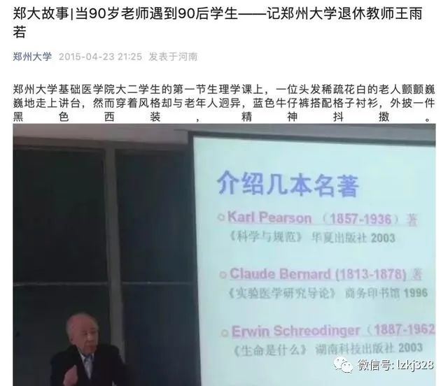 网络公开资料显示,王雨若教授长期从事神经生理学研究,曾任中国生理学会理事、河南省生理科学会理事长、河南医科大学生理学研究所所长。