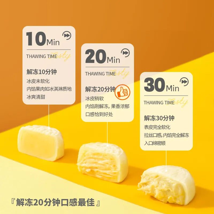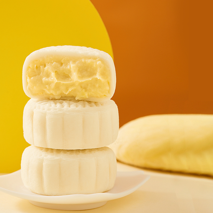 榴莲口味:泰国金枕榴莲果肉(≥45%)内馅,馥郁甘甜,一口爆浆。
