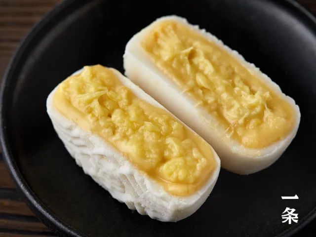 成熟的金枕榴莲,肉色淡黄、黏糯多汁、酥软味甜,吃起来有冰淇淋一般的口感,把这样的榴莲果肉,满满当当地塞进月饼里,任谁能拒绝?