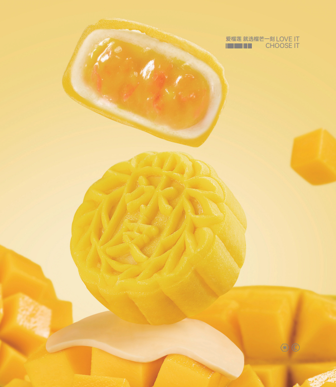 芒果芝士:芒果浓郁鲜香而诱人心动,夹杂酸酸甜甜的西柚果粒, 皮与芒果馅之间的一层厚厚芝士,更是醇香美味。