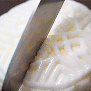 这枚月饼的冰皮,也堪称一绝。以糯米粉为主料,经过上百次捶打,才得到这晶莹剔透的冰皮。